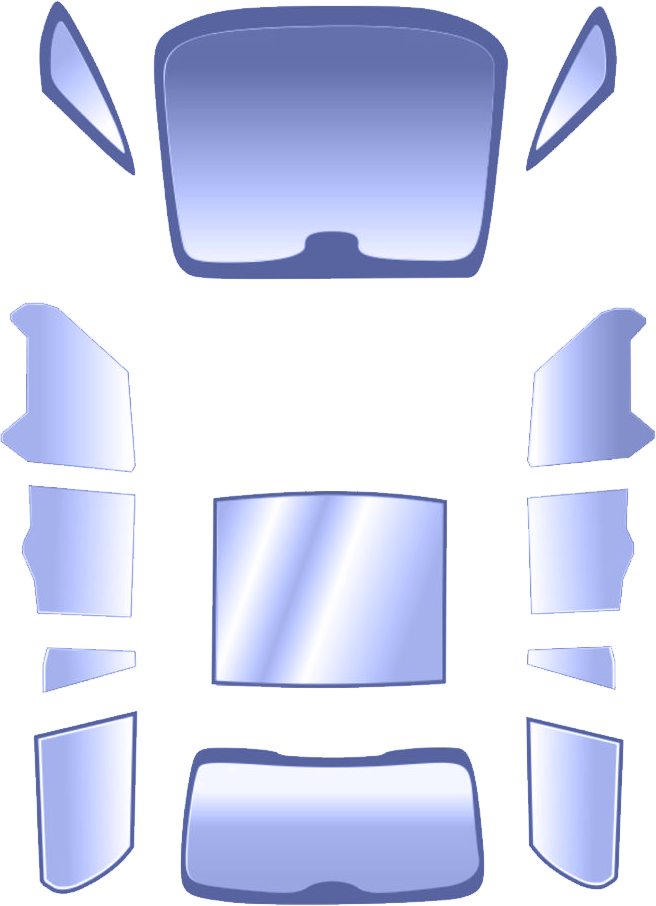 1. PARE-BRISE 2. CUSTODE AVANT GAUCHE 3. GLACE PORTE AVANT GAUCHE 4. GLACE PORTE ARRIÈRE GAUCHE 5. FIXE PORTE ARRIÈRE GAUCHE 6. CUSTODE ARRIÈRE GAUCHE 7. CUSTODE AVANT DROITE 8. GLACE PORTE AVANT DROITE 9. GLACE PORTE ARRIÈRE DROITE 10. FIXE PORTE ARRIÈRE DROITE 11. CUSTODE ARRIÈRE DROITE 12. TOIT VITRÉ 13. LUNETTE